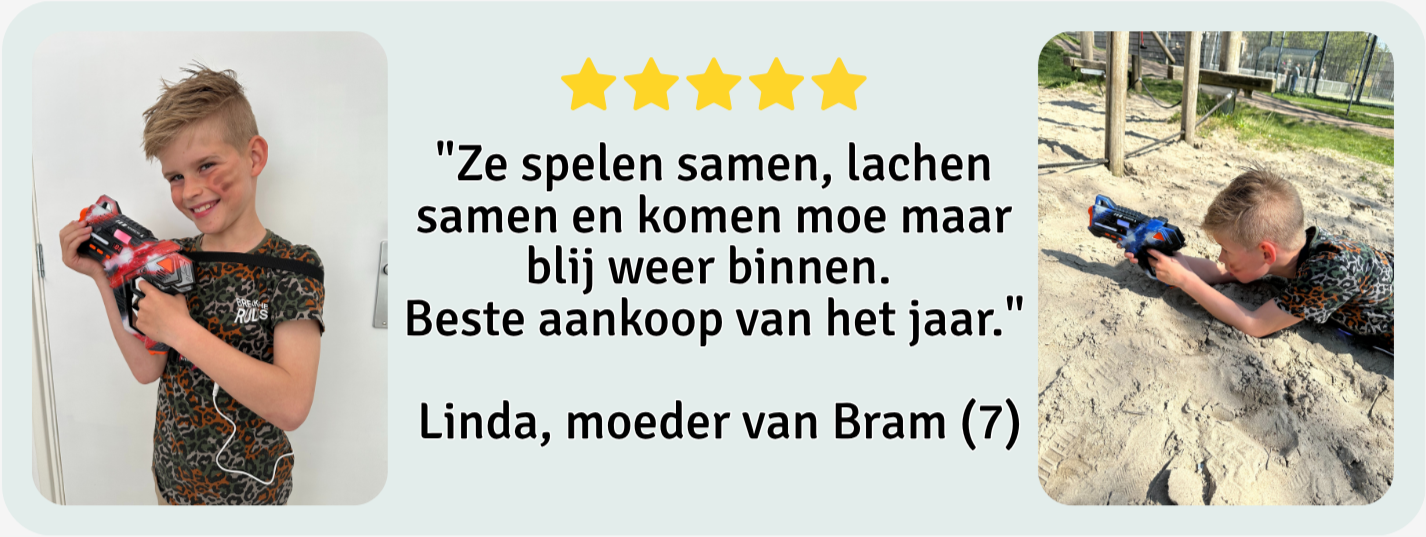 En tant que parent, vous souhaitez bien sûr que vos enfants jouent en toute sécurité. Le kit Lasergame a été conçu en pensant à la sécurité. Les rayons sont totalement inoffensifs et l'équipement est facile à utiliser. Vous pouvez donc regarder en toute tranquillité pendant que vos enfants vivent leur propre aventure.